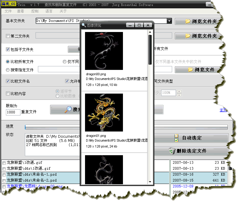 Anti-Twin is a small software application which compares files, i.e. it searches for duplicate or similar files on your hard disk drive. All similar or identical files that were found can either be sent to the recycle bin or directly deleted. This will increase the hard disk space on your computer. Select the option “Compare file content” to compare the entire binary content of the files. This means that the file names are irrelevant. Here, the basic principle is: “Name is but sound and smoke - size matters! And never lose sight of the inner values.”